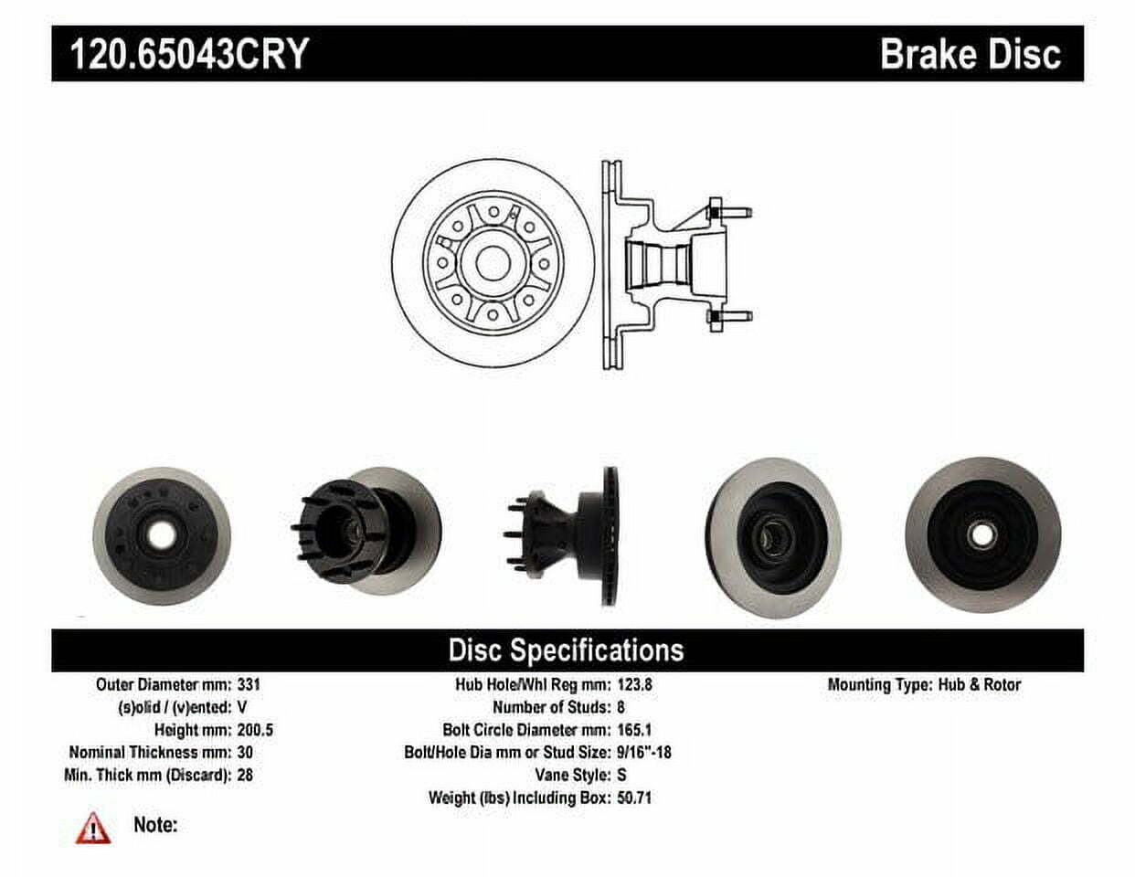 Centric Parts 120.65043 Premium Brake Rotor with E-Coating Fits select: 1995-1998 FORD ECONOLINE