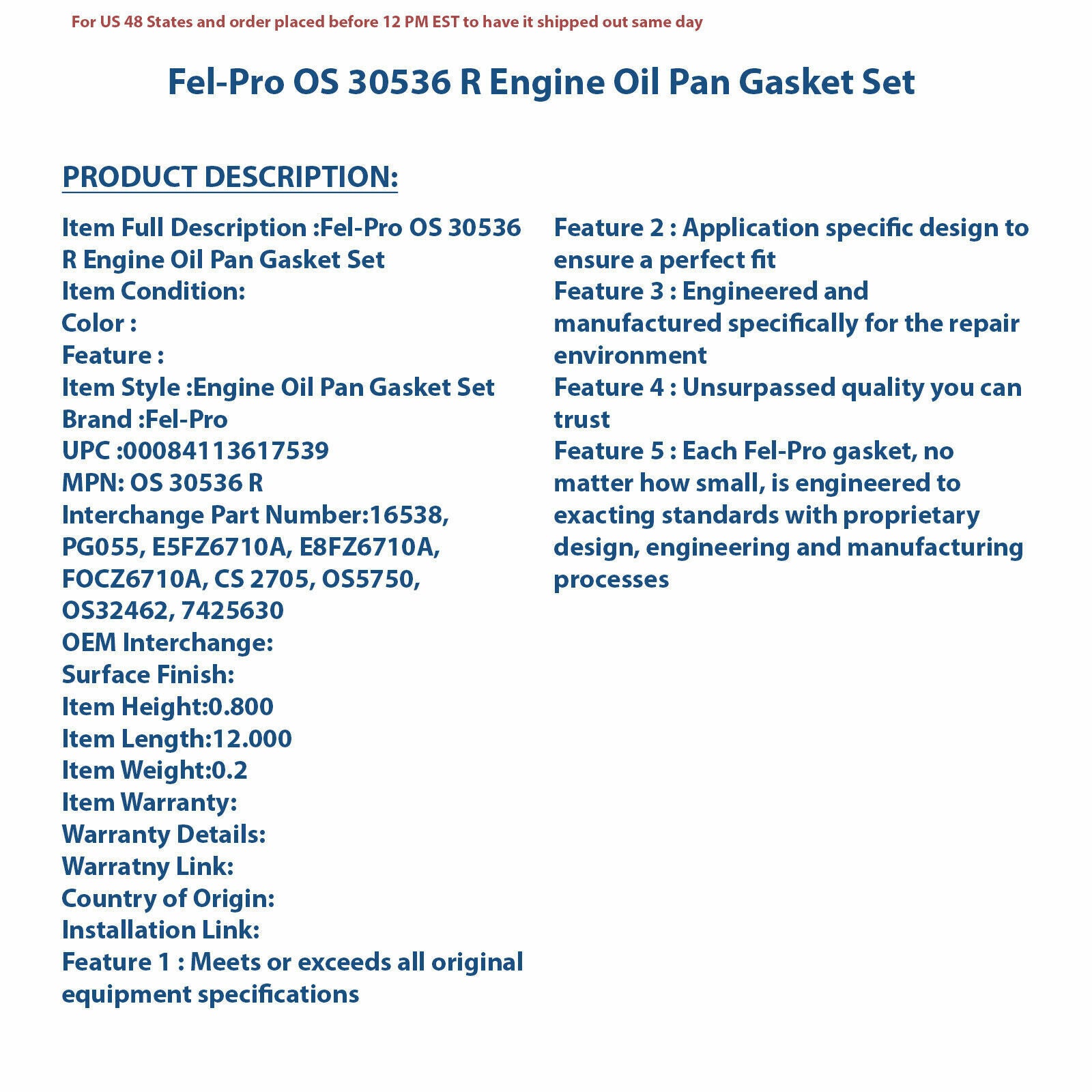 Fel-Pro OS 30536 R Engine Oil Pan Gasket Set