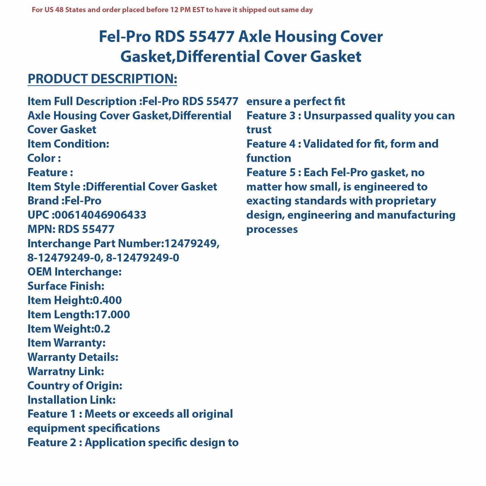 Fel-Pro RDS 55477 Axle Housing Cover Gasket,Differential Cover Gasket