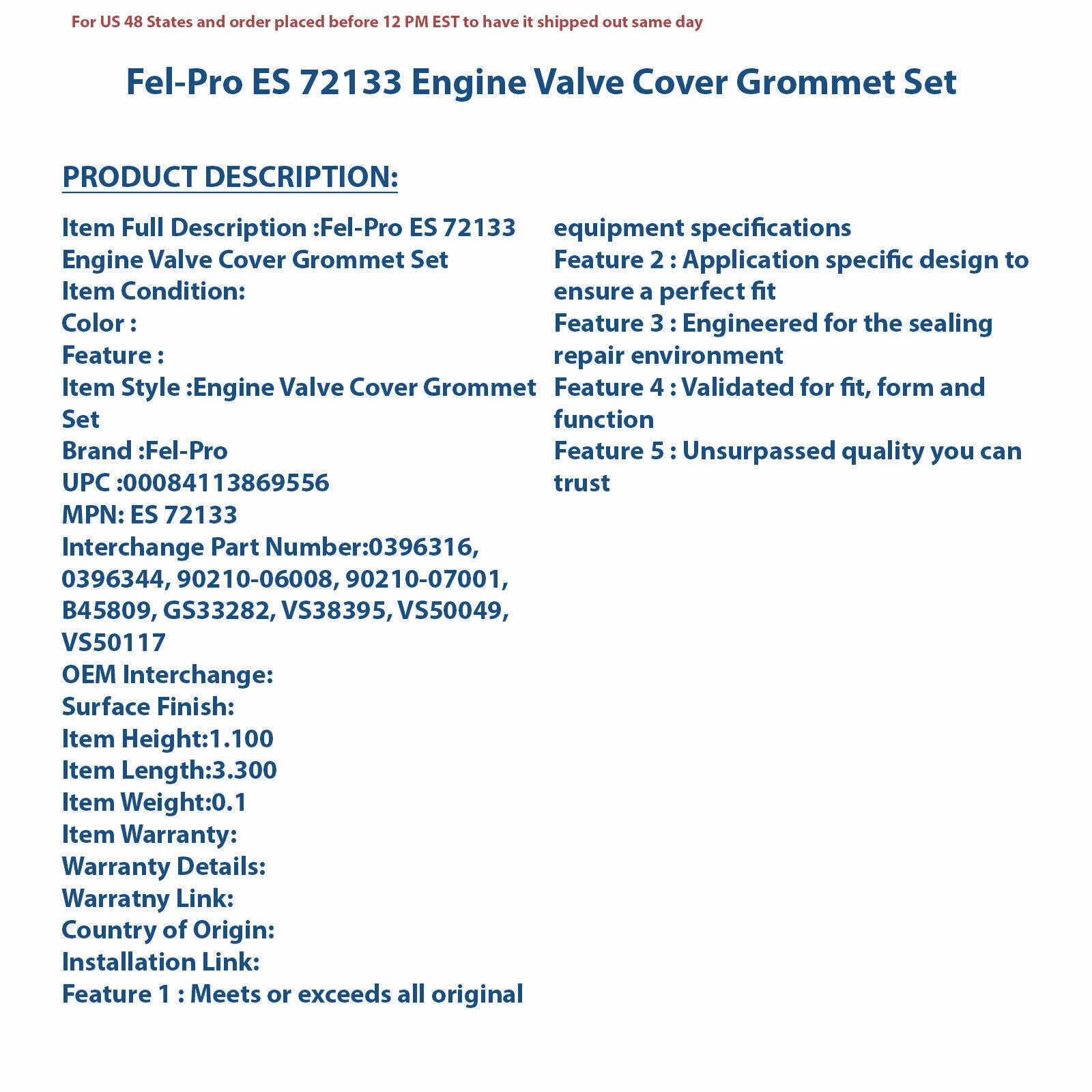 Fel-Pro ES 72133 Engine Valve Cover Grommet Set